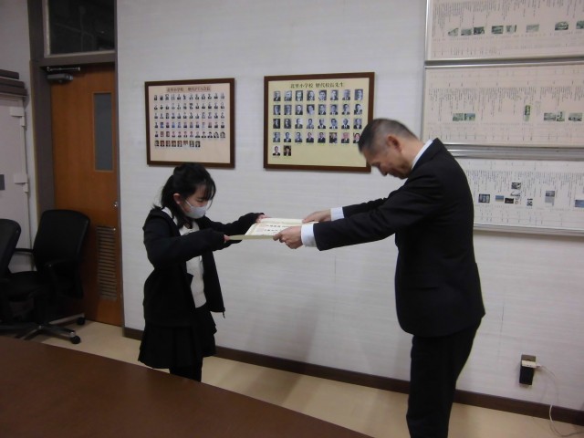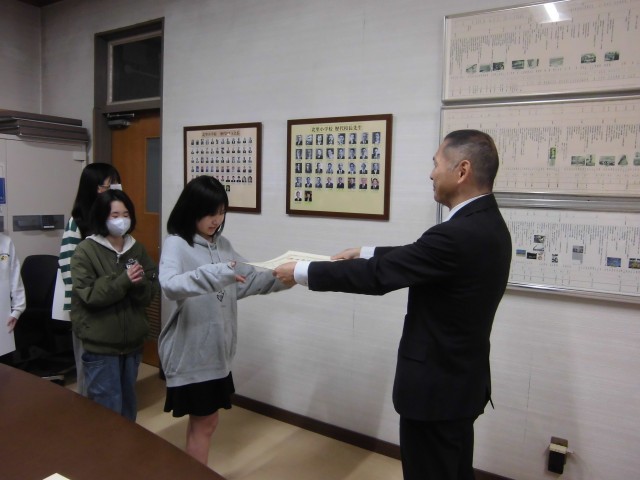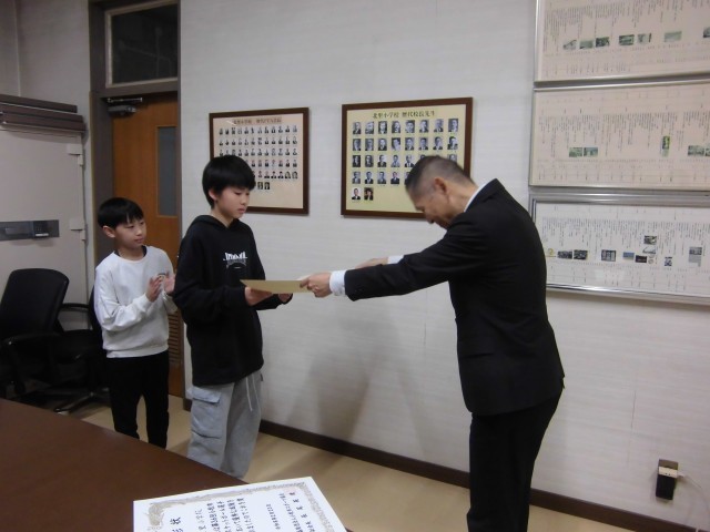 大会出場のメンバーが代表で表彰を受けました。