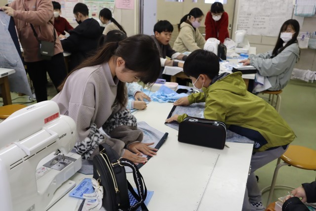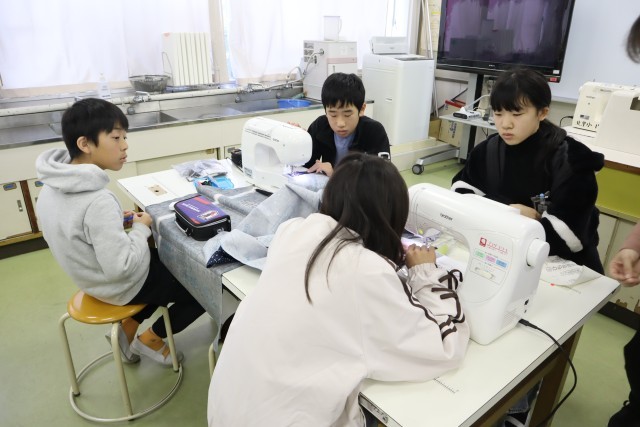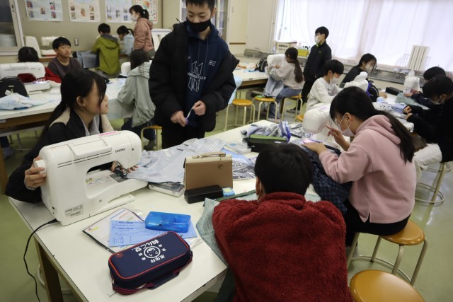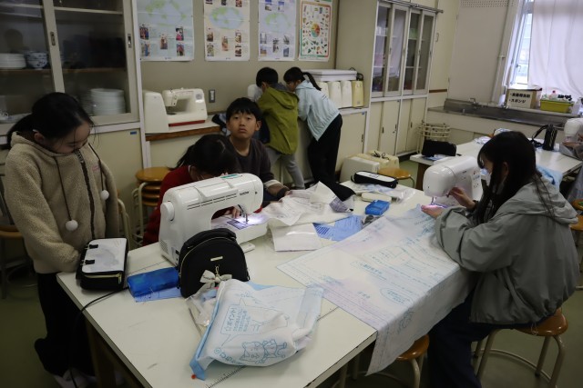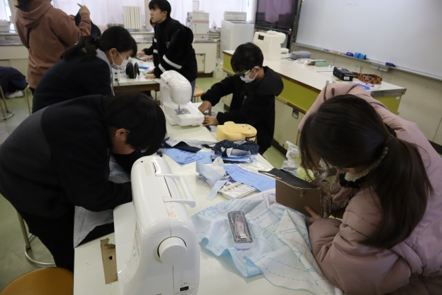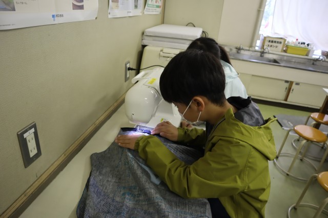 布を切り、はしを折り返してまち針でしっかりと止めます。そこまでできたらミシンで縫っていきます。慎重に、丁寧に集中してミシンで縫っている姿はなんだかかっこういいですね。