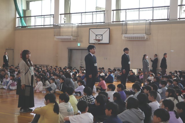着任式では、新しく北里小に来ていただいた先生方を紹介しました。