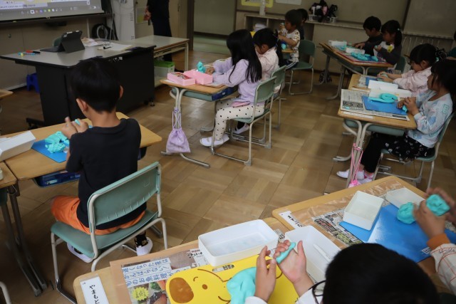 まずは、ねんどをこねてやわらかくします。