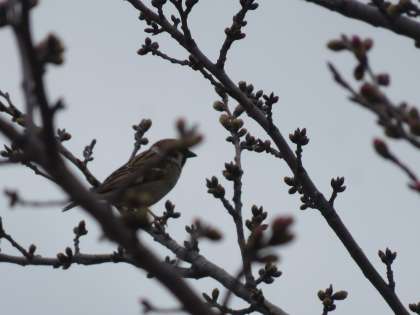 サクラの枝が揺れたので、目をやると小鳥が遊んでいました。