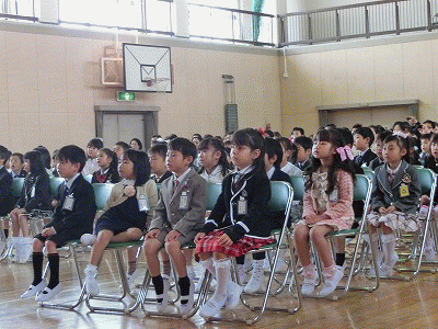 きょうの入学式で、2年生の代表児童は、アーチを持って入退場のお手伝いをしました。お祝いの言葉も、練習の成果を発揮して、大成功でした。お疲れさまでした。新入生が食い入るように注目して見ているのが、印象的でした。