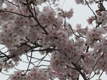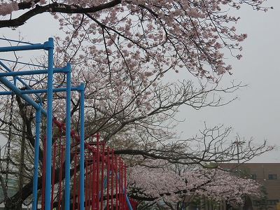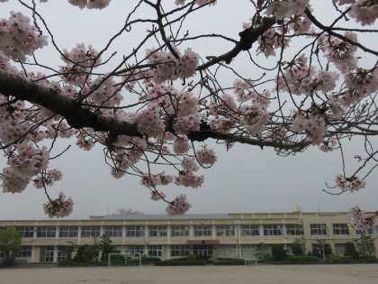 花曇りのなか 北里小のサクラは満開です