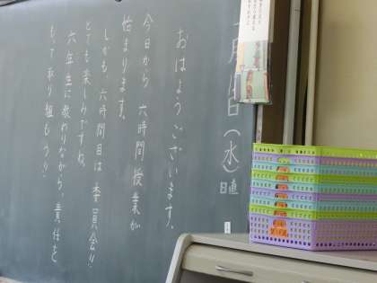 5年生のあるクラスの黒板に書かれていました。