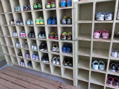 【写真:「そろっていると気持ちいい」3年生の靴箱の様子】