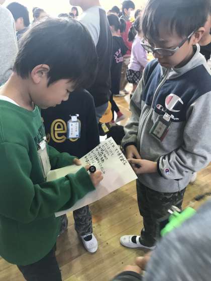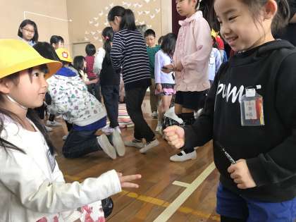1年生を迎える会がありました。1年生の子と一緒にゲームを楽しみました。ドレミの歌では、元気いっぱい歌を歌ったり、体を動かしたりしました。4年生として、1年生にとってあこがれのやさしいお兄さん、お姉さんになってほしいと思います。