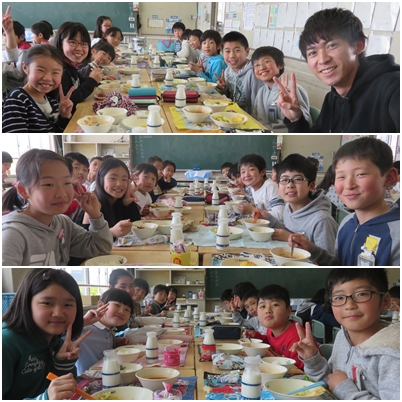 きょうの給食訪問は、5の1です。5年生は始業式から顔つきが4年生の頃とは、格別に違っていました。やる気があふれています。今年がんばりたいことを尋ねると、返ってくる答えはいろいろあれど、意欲に満ち満ちている点は同じでした。部活をがんばりたいこと、優勝を目指したいこと、新しく始まる委員会を一生懸命に行い、6年を助けながら学校のために尽くすこと、代表委員としてがんばること、運動会で去年以上の成績を収めること、習いごとをがんばること、などいろいろありましたが、今、1番気になることは「野外生活」のようです。初めての宿泊体験、しかも2拍。どんな活動ができるのか、みんな興味津々です。その準備が、いよいよきょうの6時間めから始まります。本番は5月23日かですから、もう1ヶ月少ししか準備の期間はありません。しかもその間にはGWもあります。時間をうまく使ってくださいね。活躍を期待します。