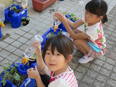 「はやくおおきくなってね。花がさくのがたのしみ!」
