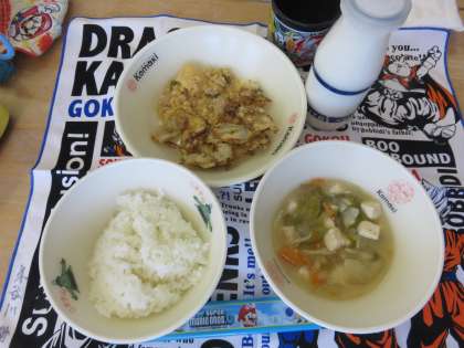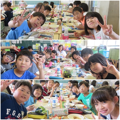 きょうの給食訪問は、4の1です。給食時間前に、栄養士の松岡先生から栄養指導を受けました。「朝食の大切さ」がわかったようです。近くの子に聞くと、ほとんどの子が朝はパン食。中には卵かけごはんにパン2個を食べるという子もいました。パンが好きなんですね。「今、楽しみなことは?」と尋ねると、すぐに「プール」という答え。きょうの6時間目に、今年初めてのプールの授業があるようです。それと部活動。サッカーやバスケット、水泳、鼓笛にバトンと4年生は新入部してはりきっています。「わたし、きょう2時間もプール入れるよ!」水泳部の子は楽しそうに言いました。