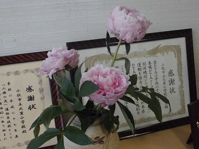 こちらは、三ツ渕にお住まいの増田様よりいただいたシャクヤクのお花です。