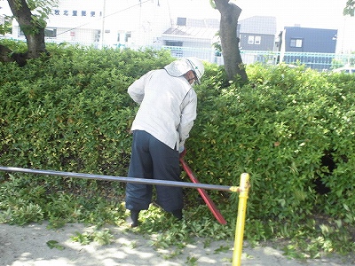 校庭や中庭の樹木の剪定をしていただきました。