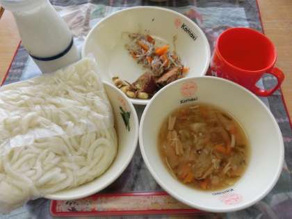 白玉うどん 牛乳 五目あんかけ いりこカシューナッツ