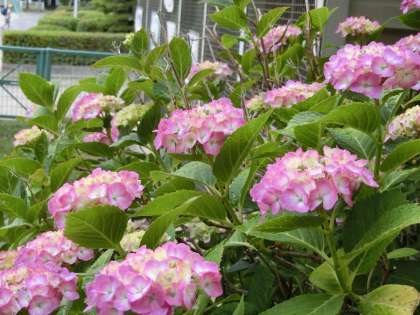 【写真:「雨がにあう花」飼育小屋の横の紫陽花(あじさい)がきれいに咲いています】
