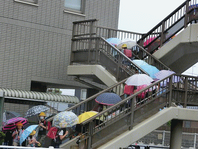 歩道橋がカラフルな傘で埋まるとき 声が