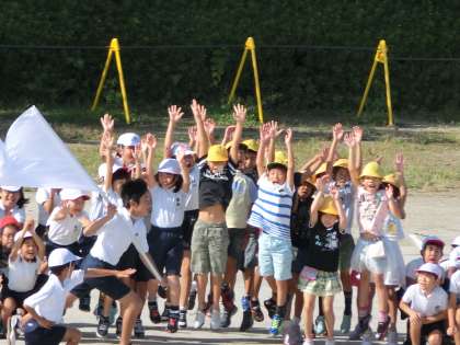 今朝の運動会の朝練習は、応援合戦を行いました。