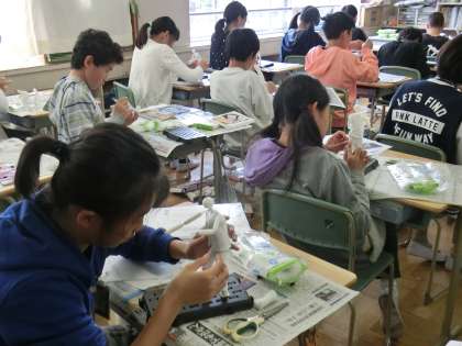 【写真:「自分の未来と向きあう」12年後の自分を想像しながら作品作りをしました。6年図工競技会場面から】