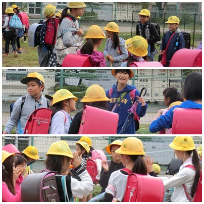今週行われた「アルミ缶&牛乳パック回収強化週間」にご協力いただき、ありがとうございます。きょうは金曜日。通学団ごとに集まって1週間の振り返りを行いました。