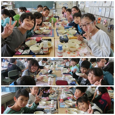 きょうの給食訪問は、5の1です。書写と図工競技会も終わった5年生。なんとか納得する作品ができたようです。きょうはテレビ番組の話題になりました。動物番組が好きな子、クイズや旅行番組が好きな子いろいろです。日曜日の夜は、定番「ちびまるこちゃん」と「サザエさん」。(あっ、まだやってるんだ。今でも)「でも、『サザエさん』みてると、もう休みはおわりだと思う」とある女の子。なるほど、「サザエさん症候群」ですね。「サザエさんを見て、楽しいんだけど、あーあ、明日から学校かと悲しくなる気持ち」になることです。でも、来てしまえば学校は楽しいところ。友だちと遊べるし、新しいことも知ることができますね。