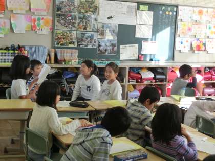 題は「紹介しよう 楽しい学校生活」です。グループで好きな授業や活動を取り上げ、紹介するものです。国語で習った、文章の書き方や発表のしかた、社会で学んだことなど、今の3年生の学習のまとめとして、発表するものです。