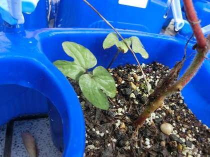 でも、よく見ると、落ちた種が発芽し、二葉が出ていました。