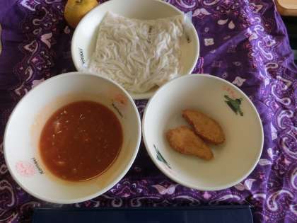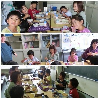 きょうの給食訪問は、国際教室を訪ねました。きょうは、ちょうど3年生を中心にフィリピンにゆかりのある児童が集まっての「交流給食」です。語学相談員の青木先生にも参加していただきました。話題は、フィリピンの食べ物や自然。フィリピンは年中暑いわけではなく、雨期は少し涼しいそうです。食べ物は辛いというよりは、酸っぱいものが多いとのことです。夏休みや冬休みにフィリピンに行く子が多いようです。うらやましい話です。フィリピンの言葉であるタガログ語で少し会話しました。タガログ語で「ありがとう」は、「サラーマット」だと教えてもらいました。サラーマット、青木先生。