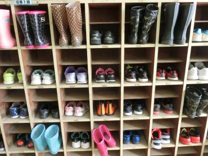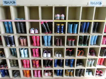 くつ箱のサイズが小さすぎて、長ぐつがうまく入りません。もっと大きなくつ箱がほしいと市に予算要望もしているのですが……。なかなかすぐには改善されないのが現状です。
