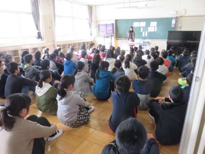 読み聞かせ終了後、案内役の児童に感想を聞くと女の子は「昔の人も今の人たちと同じで、悲しいことは悲しいしうれしいことはうれしい。人を思う気持ちも同じなんだと気づきました」と答えました。男の子は「村瀬先生の語りは、悲しい話がより悲しくなるし、おもしろいところはとてもおもしろいので楽しめます」と話してくれました。
