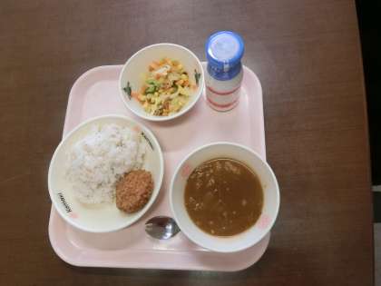 今日の献立はカレーライス・和風コロッケ・福神サラダでした。