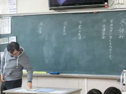 登下校の様子や冬休みの生活について、担当の先生と一緒に振り返ったり、安全確認をしたりしました。