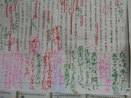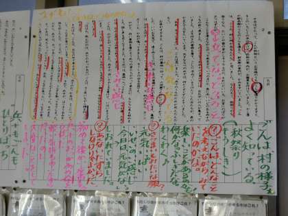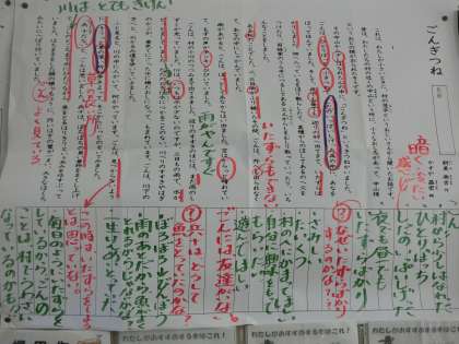 「ごんぎつね」の学習をしたあと、みんなで話し合ったことを掲示物にして子どもたちの目に触れるよう工夫しています。