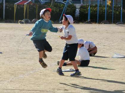 寒さに負けず、みんな夢中になって縄跳びの練習をしていました。