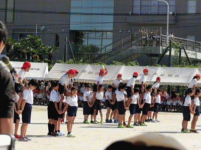 はじめ五分の戦いでしたが、突然、白組の大将騎が動き出しました。勝負に出たのです。しかし、赤組に追われて逃げる、逃げる。無事、逃げ切れれば勝機もありましたが、残念、力つきました。赤の完勝。これで、赤白戦は、6対3で赤が圧倒的なリードとなりました。残る得点競技は3つ。3つすべて勝てば白組の優勝もあり得ます。白の行く手は厳しいぞ!