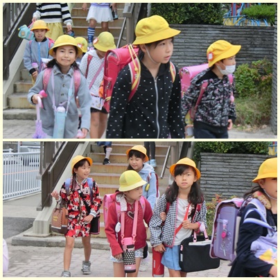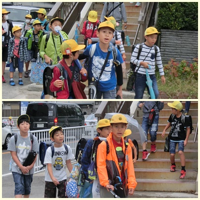ちょうど里の子がやってくる時間帯に、パラパラ雨が降ってきました。傘をさすかどうするか迷う程度です。2、3名はすぐ反応して傘をさしましたが、ほとんどの子はそのまま歩き続けました。すっかり秋めいてきました。遠くから歩いてきても、もう汗をかくことはなくなったようです。