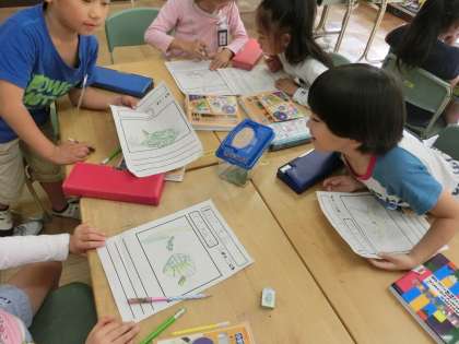 早速、虫の様子を観察しプリントにまとめました。