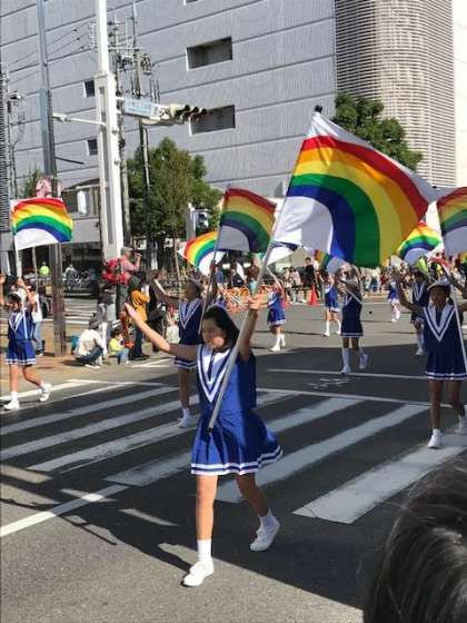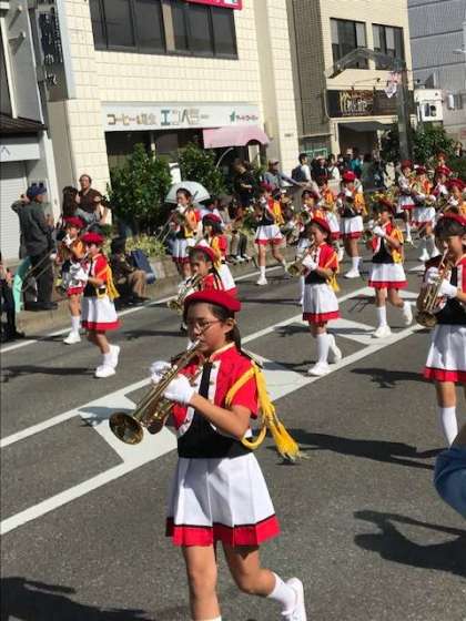 12時42分、予定通り北里小マーチングバンドがパレード開始しました。