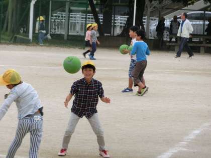 長い放課になると、待ってましたとばかりに運動場に飛び出してきます。何をするにも最高の季節です。ボール遊びやかけっこ、遊具遊びで楽しみます。