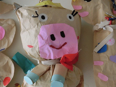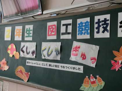 2年生は図工競技会で「くしゃくしゃぎゅっ」のタイトルで作品を作りました。