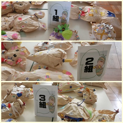 個性的な作品ができました。北館2階の西側学習室(2の3の教室近くの階段を上がった突き当たりの部屋)で展示してあります。