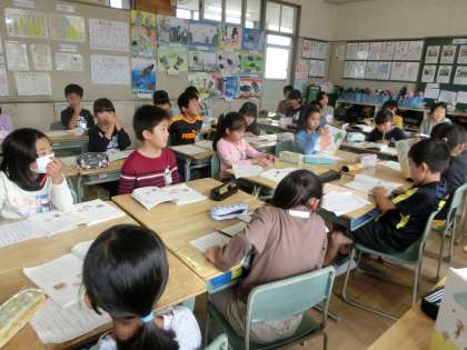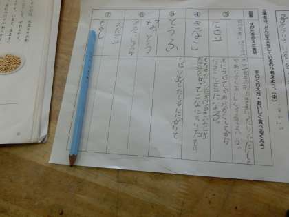 「すがたをかえた大豆」という説明文の中に、いろいろなすがたに変身していく食品が出ています。ワークシートに整理してまとめていきます。