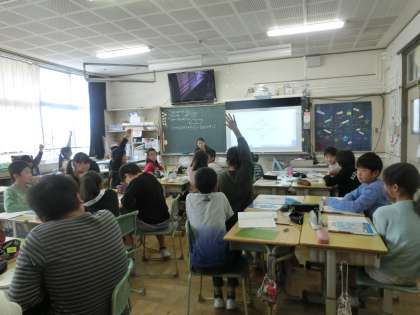 スクリーンにある図をもとにして、友だちに自分の考えをわかりやすく伝えることができました。