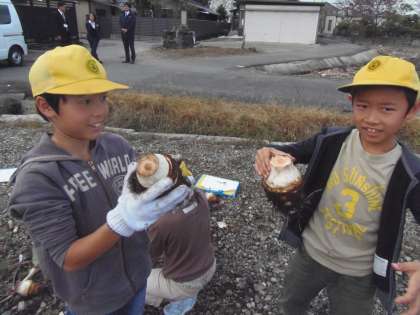 子供たちは土と根のからみをほどきながら、実をとりました。