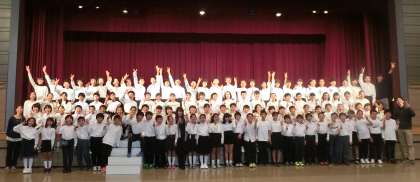 持てる力をすべて出し尽くした合唱。先生たちも一緒になって協力し、創り上げた6年のハーモニー。これほどの合唱を聴けるとは思いませんでした。その陰には、言い尽くせぬ苦労、挫折、時には仲間とのいさかいもあったに違いありません。それを全て乗り越えての合唱。最高です!出場したどの学校の歌声もすばらしかったですが(ひいき目かもしれませんが)みなさんの歌声こそ最高でした。格別でした。感動しました。ありがとう!