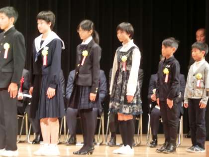【写真「入賞おめでとう」:11日に小牧市青少年健全育成市民大会が開催され、家庭の日の絵画・ポスターの入賞者が表彰されました】