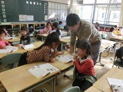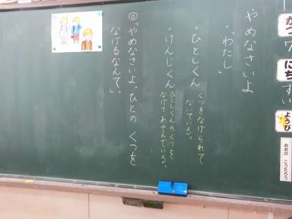 わたしが がっこうから かえるときのことです。おなじくらすのけんじくんがくつばこのところでだれかのくつをもって、あそんでいました。