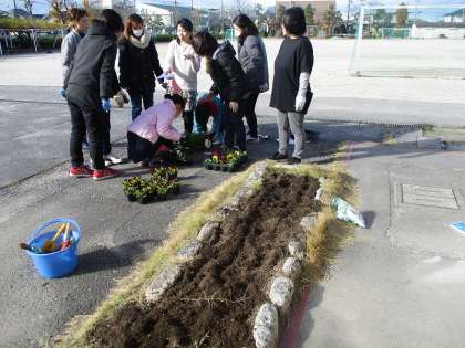 卒業・入学シーズンに向け、こちらの花壇も手を加えていただきました。