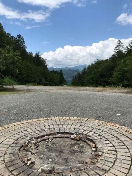 これでキャンプファイヤーができれば最高です。写真は、キャンプファイヤーの中央から見たものです。なんだか期待が持てそうな天候です。天気予報では、1ミリ位の雨が降る予報もあります。