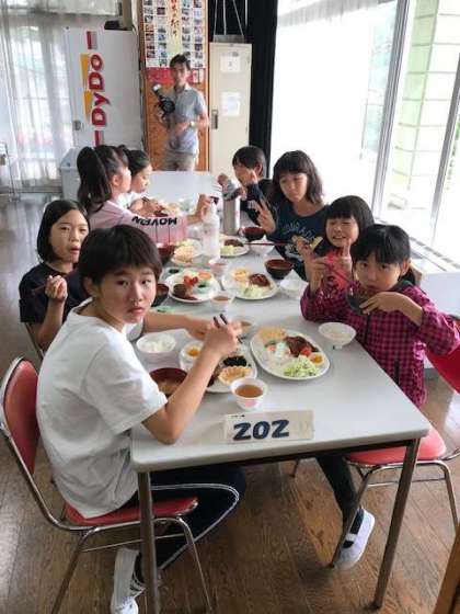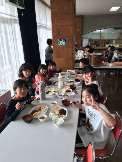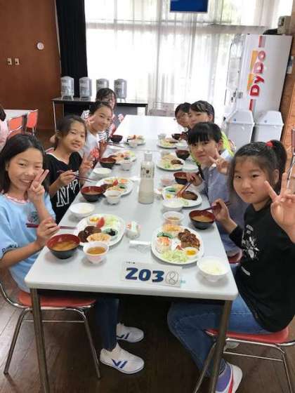 ウォークラリーで動き回ったので、お腹がすいたようです。みんなパクパク食べています。