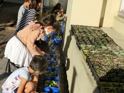 その近くでは、園芸委員が植え替えをしたビオラの苗がすくすくと育っています。