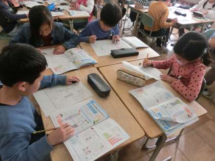 2時間目に4年生は養護の先生から保健の授業を受けました。
