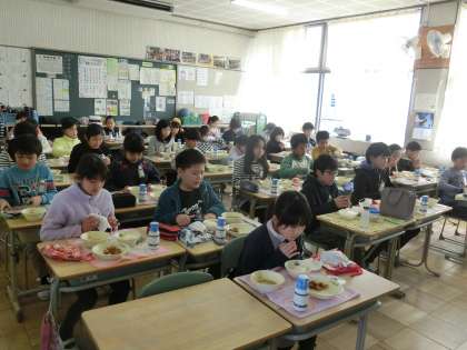 きょうの給食訪問は4の1です。隣の4の2は学級閉鎖中です。「寂しいね」、と話しかけたら「ぼくたちもやりましたから」との返事が返ってきました。そうです。4の1は2学期に学級閉鎖をやっていました。でも、あれはA型だから。今流行しているのはB型ですから注意してください。インフルエンザ感染防止策として、給食はグループにせず、一人一人食べます。何とも味気ない風景ですね。